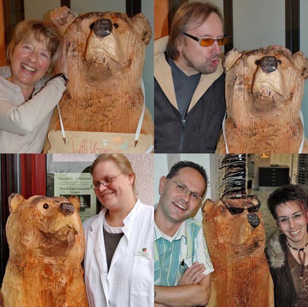 denn in den Eingangsbereichen stehen lebensgroße Bären-Holzskulpturen