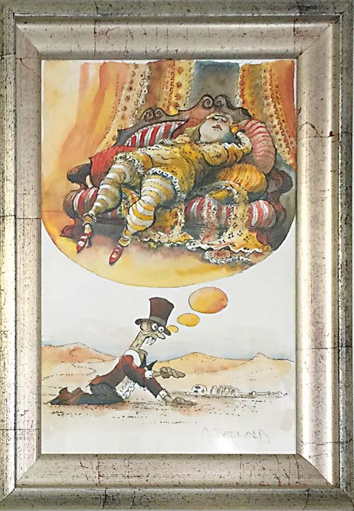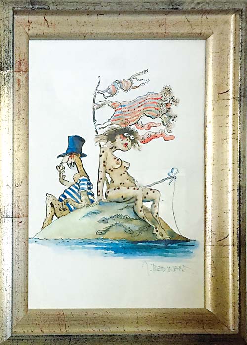 Erlebnisse er in seinen unverwechselbaren Aquarellen im Bild