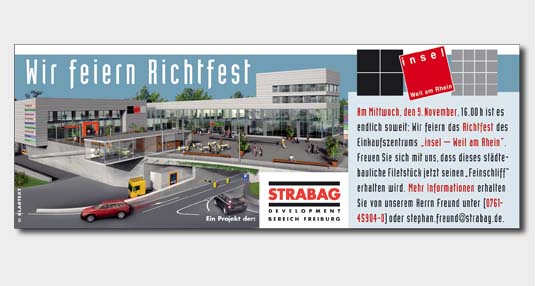 Kunde STRABAG Development Aufgaben Einzelaufgaben Logo – JA (Aktionslogo und Slogan) Internet – Nein PR – JA Hier: Vermarktung einer Großimmobilie Weiter Zurück Gesamtübersicht Übersicht Industrie
