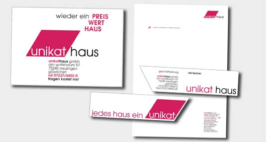 Kunde unikathaus Massivhäuser Aufgaben Einzelprojekte Logo – JA Internet – NEIN PR – NEIN Hier: Corporate Design Weiter Zurück Gesamtübersicht Übersicht Dienstleistung