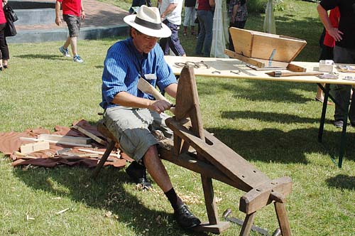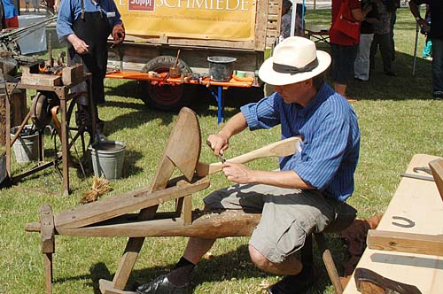 Uli Friesinger entspannt seine Axtstiele schnitzt.