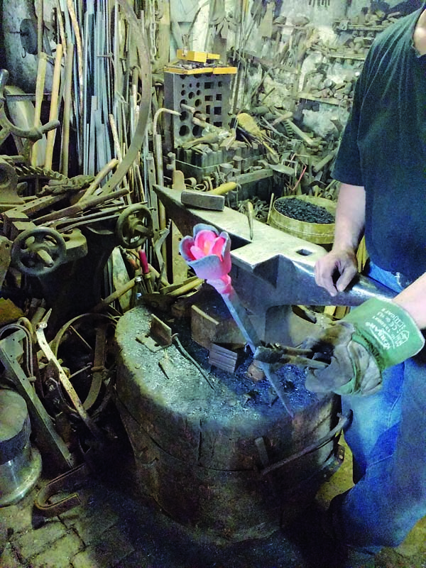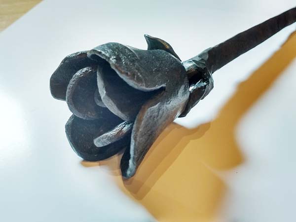 beim Herstellen, Schmieden einer Rose tatkräftig mithelfen;
