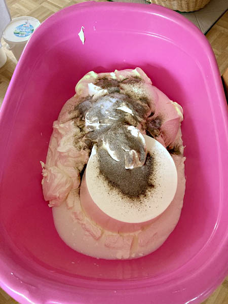 um die Dimension darzustellen. Das hier ist eine Kinderbadewanne.