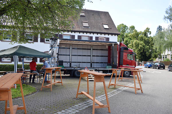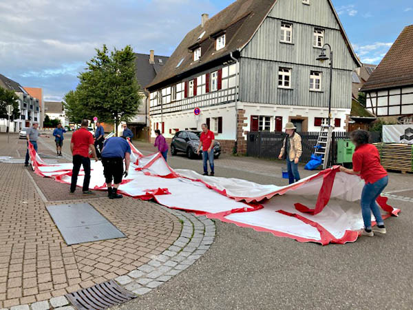 wird von der Feuerwehr noch ein Zelt ausgeliehen und aufgestellt.