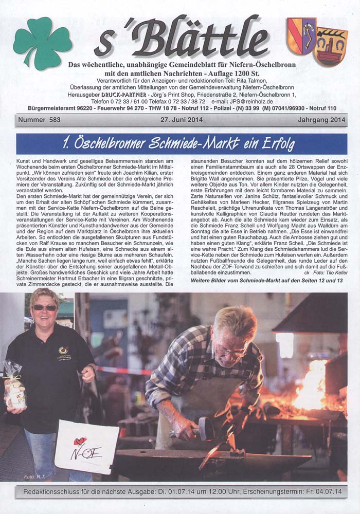 Blatt 1 Presse-Artikel in S'Blättle Niefern-Öschelbronn. Für XXL-Abbildung bitte auf Bild klicken.