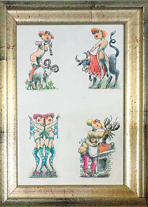 Drei Aquarelle mit jeweils 4 Sternzeichen