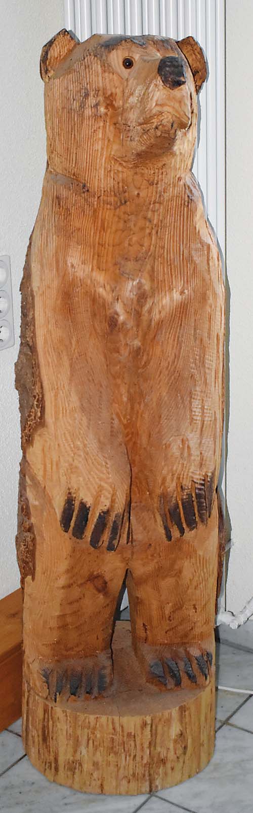 jedoch seine Figuren per Motorsäge ausarbeitet, ist das