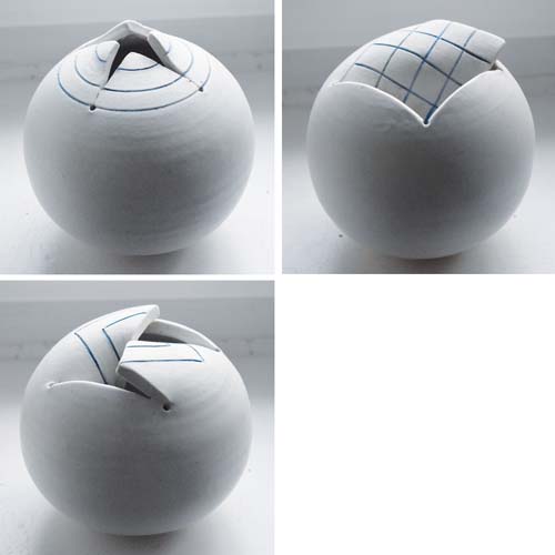 Keramik, farbig akzentuiert und oft in sich beweglich. Auf