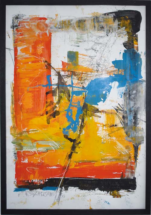 Acryl, Aquarellfarbe), meist in Mischtechnik, auf Papier,