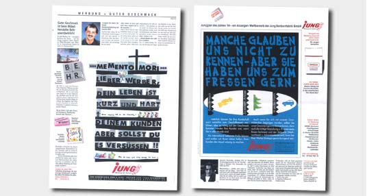 Kunde JUNG Bonbonfabrik Aufgaben Einzelaufgaben Logo – Nein Internet – NEIN PR – SPORADISCH Hier: Anzeigen- Kampagne in Fachpresse Weiter Zurück Gesamtübersicht