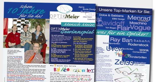 Kunde Optik Meier Aufgaben Einzelprojekte Logo – NEIN Internet – JA PR – JA Hier: Aktion: „10 Jahre Optik Meier“ Weiter Zurück Gesamtübersicht Übersicht Dienstleistung