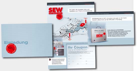 Kunde SEW Antriebstechnik Einzelaufgaben Logo: Aktionslogos Internet – Nein PR – Nein Hier: Einladung für div. Messen Weiter Zurück Gesamtübersicht